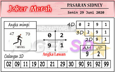 Prediksi Joker Merah Senin 29 Juni 2020